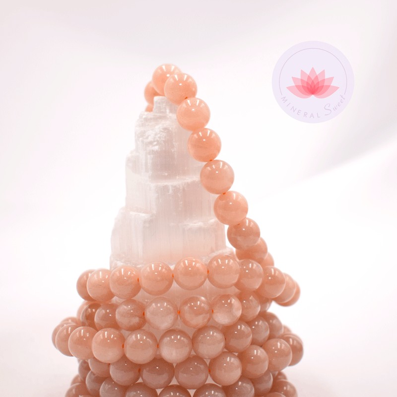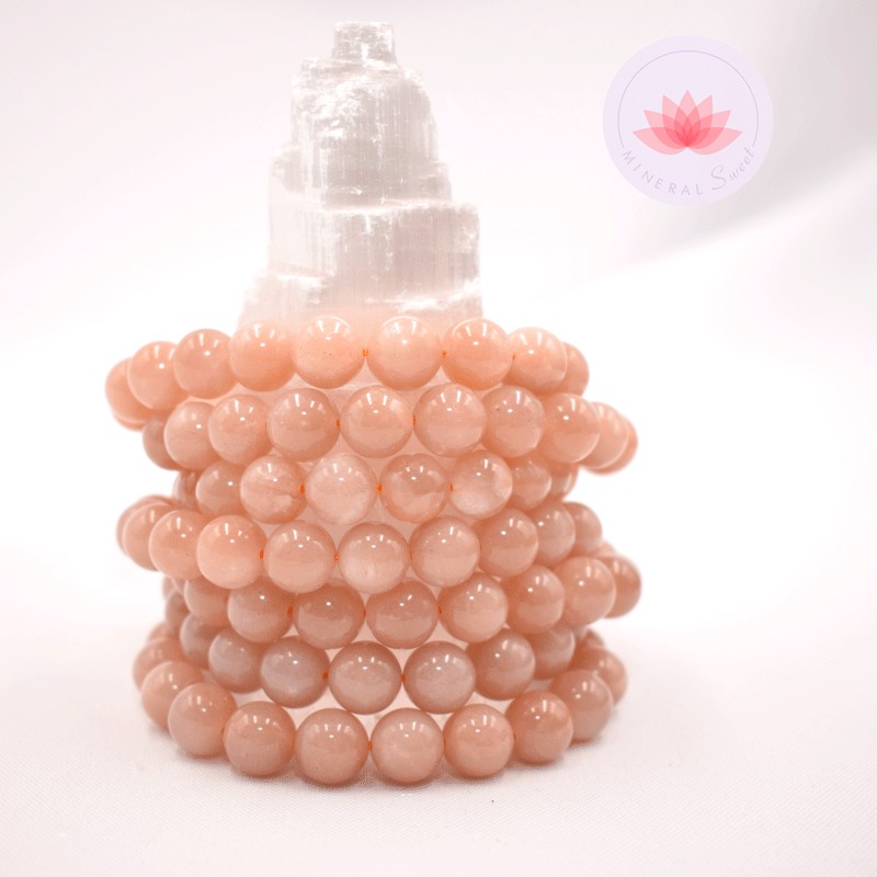 Pierre de Lune rose bracelet perles rondes 10mm