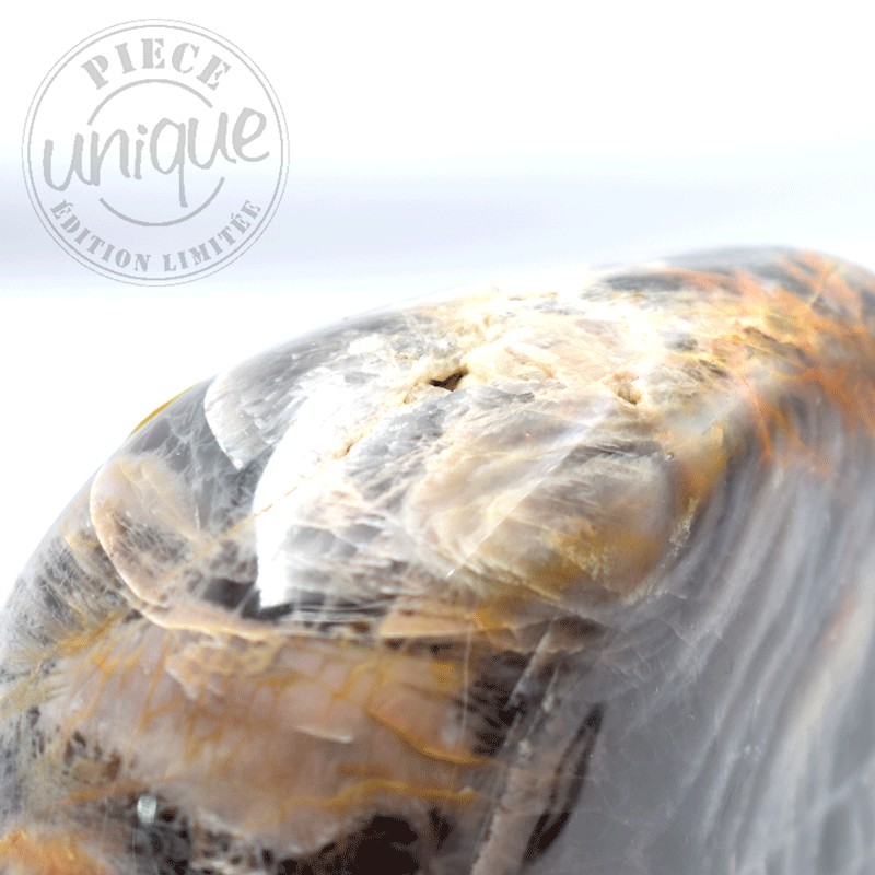 du fait de tout ce qui nous vient des croyances anciennes, la Pierre de Lune est considérée comme une pierre de douceur très calmante, apaisante, anti-stress.