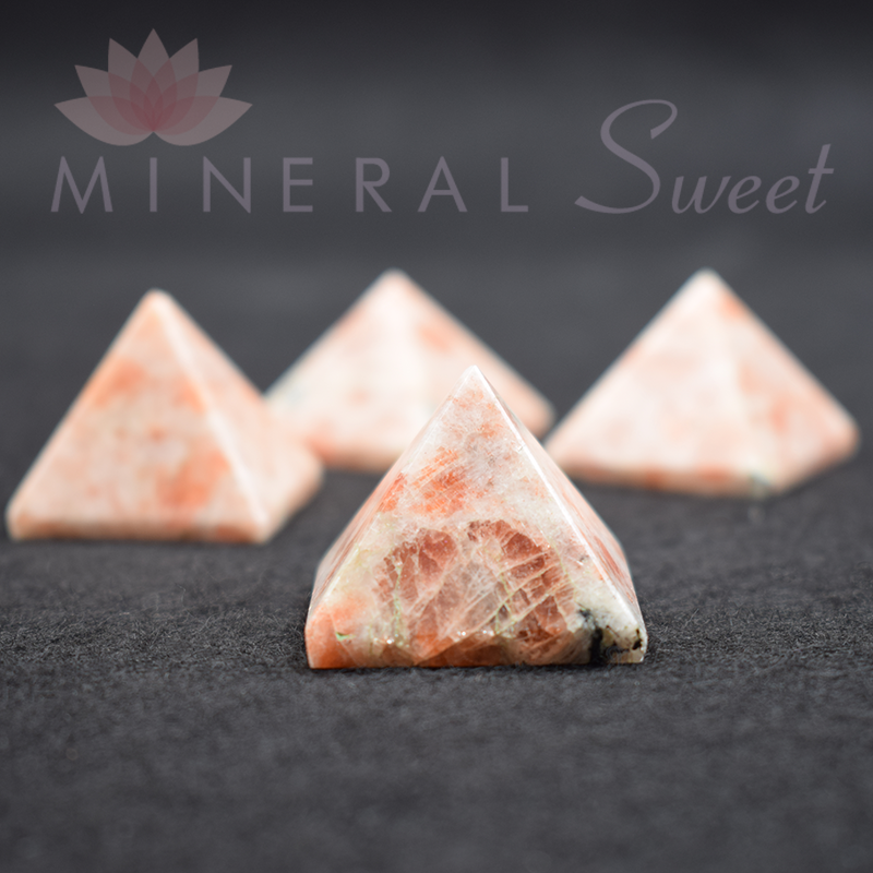 Pyramides 3cm taillées dans la sublime pierre du soleil naturelle, en Inde.