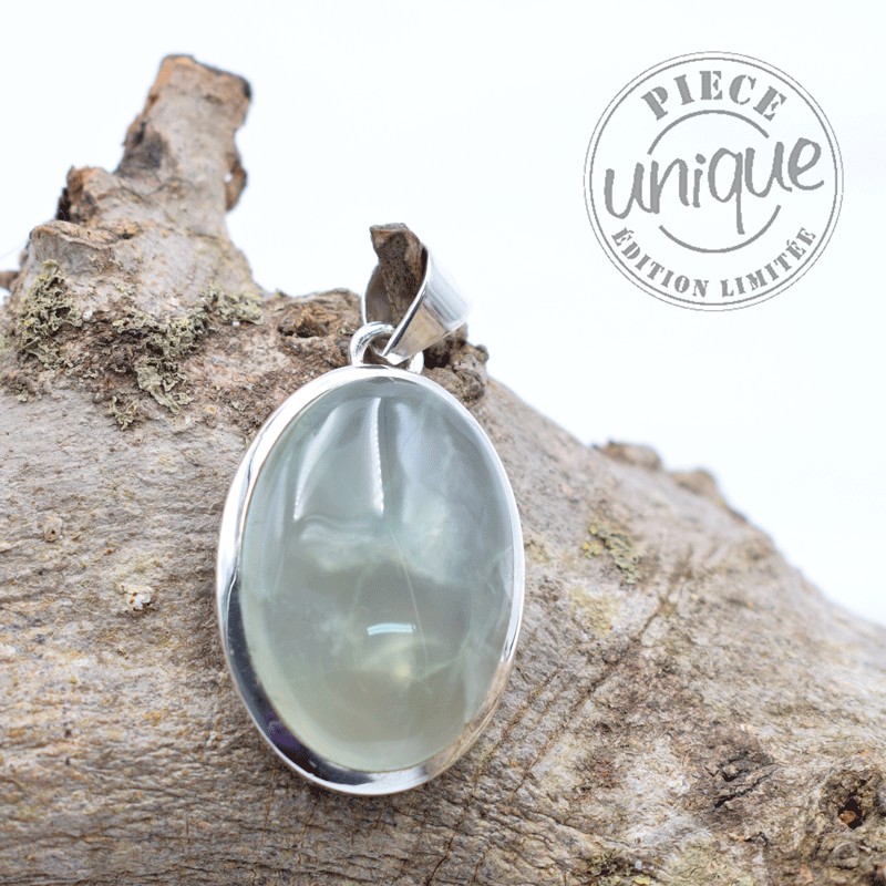 Pendentif Préhnite serti argent 925.