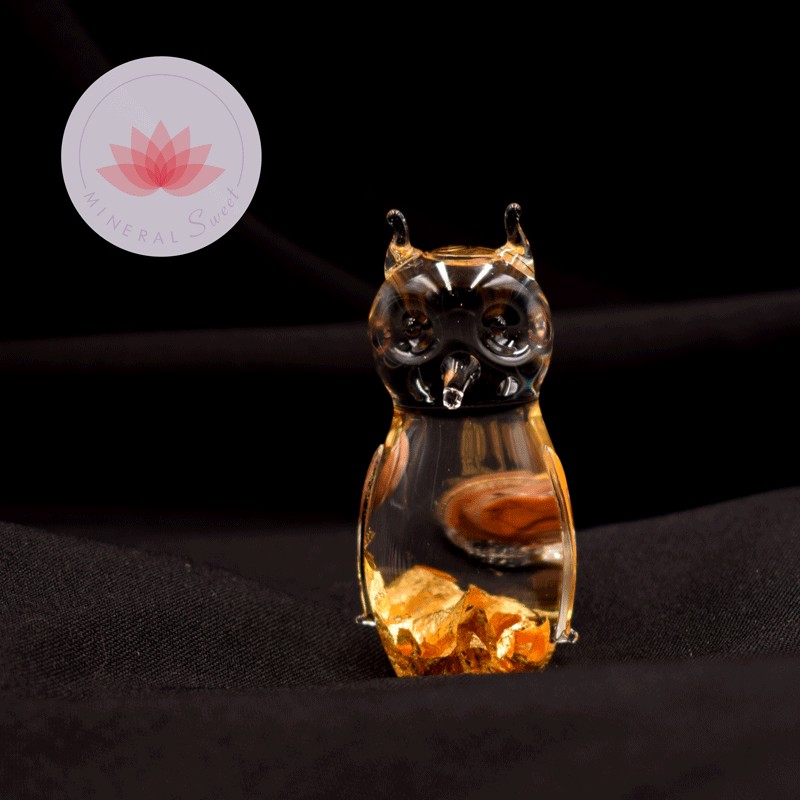 Hibou de paillette d'Or naturel vendu avec un certificat de garantie : Or Brésilien.
