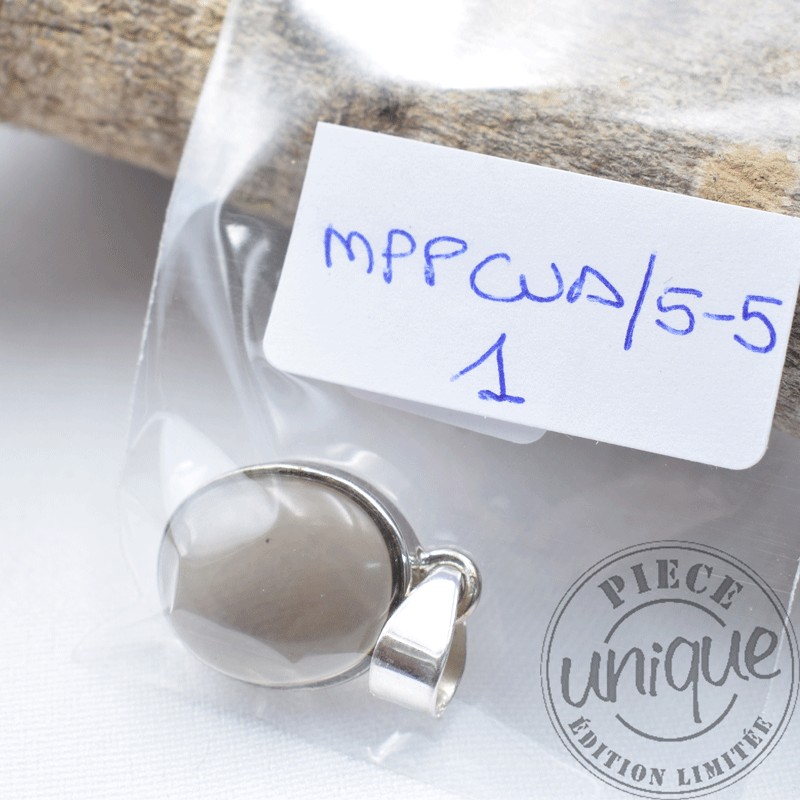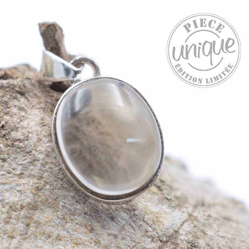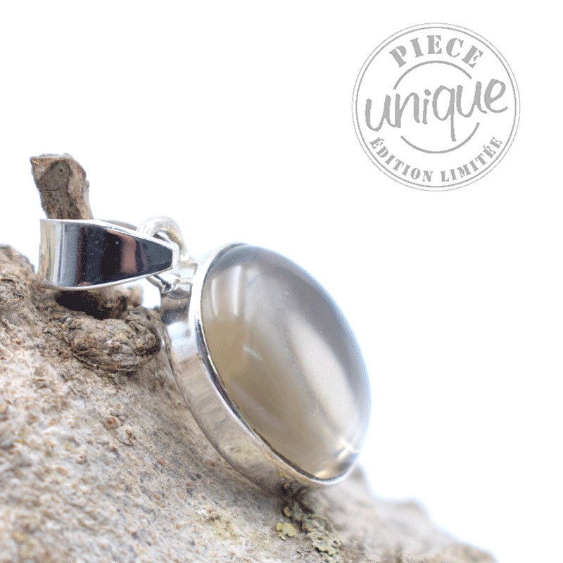 Petit et beau pendentif en Quartz fumé serti argent.