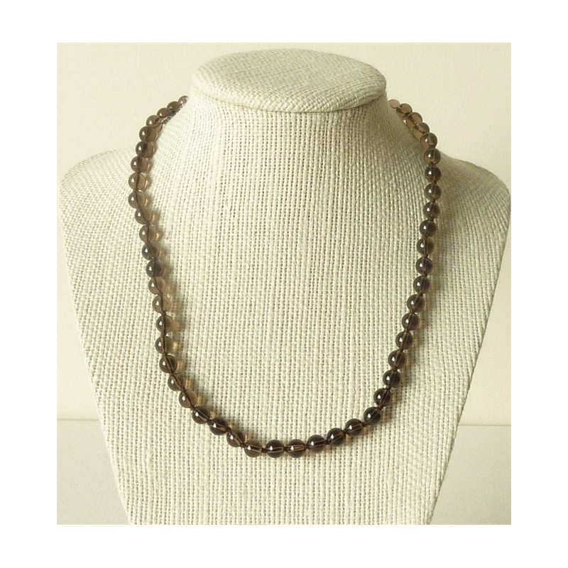 Collier Quartz Fumé Perles rondes 6mm