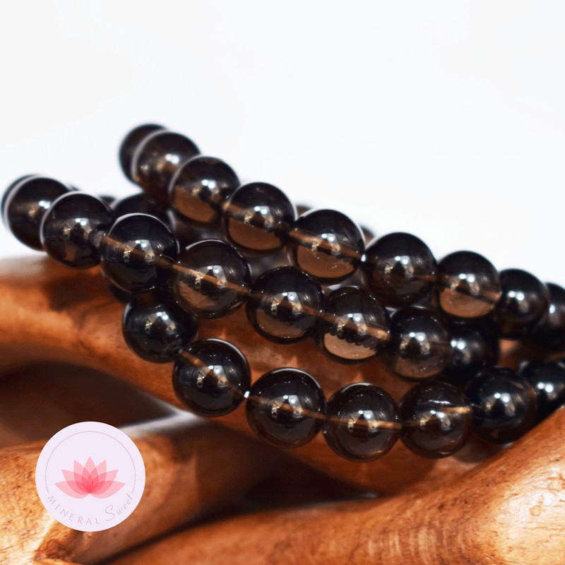 Bracelet Quartz fumé perles rondes 10mm
