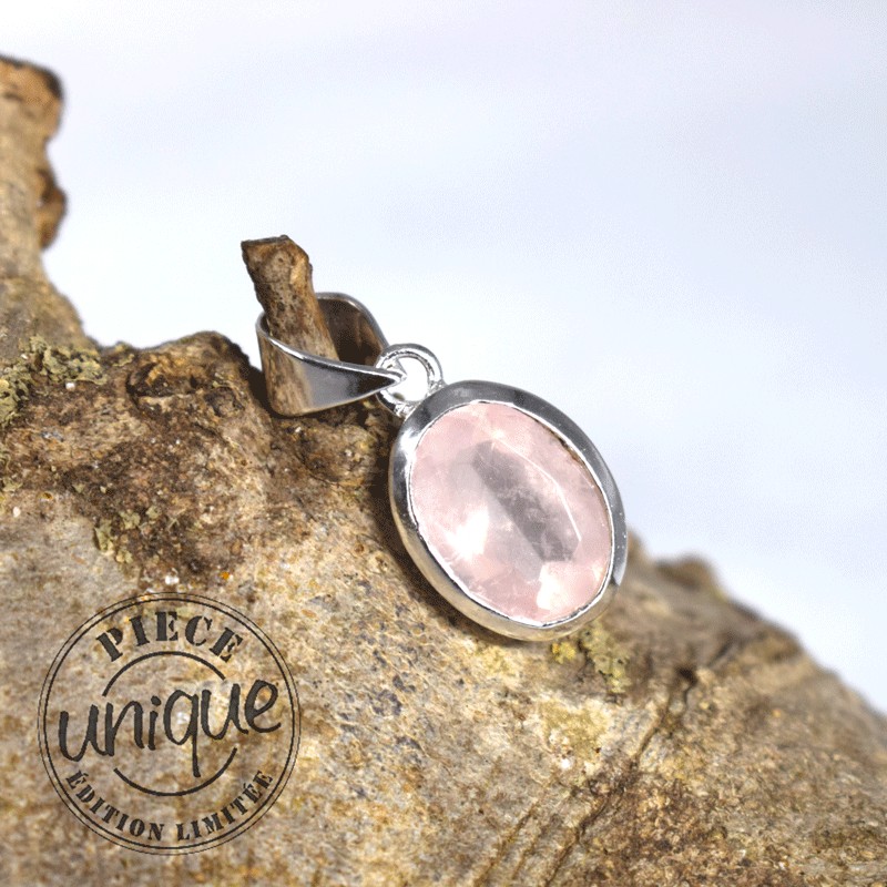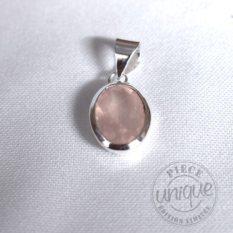 Pendentif Quartz rose serti argent forme ovale et facetté