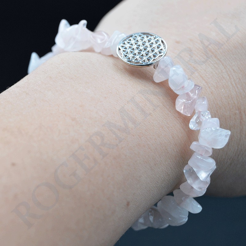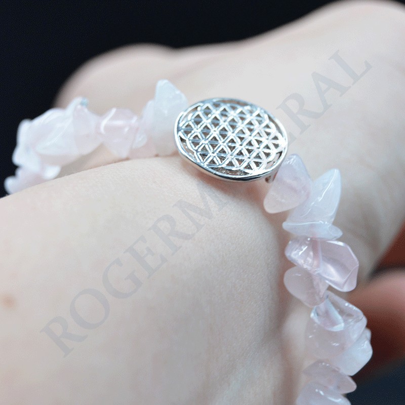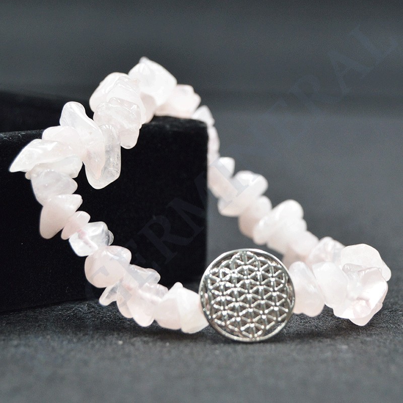 Bracelet Quartz Rose baroque avec Fleur de Vie