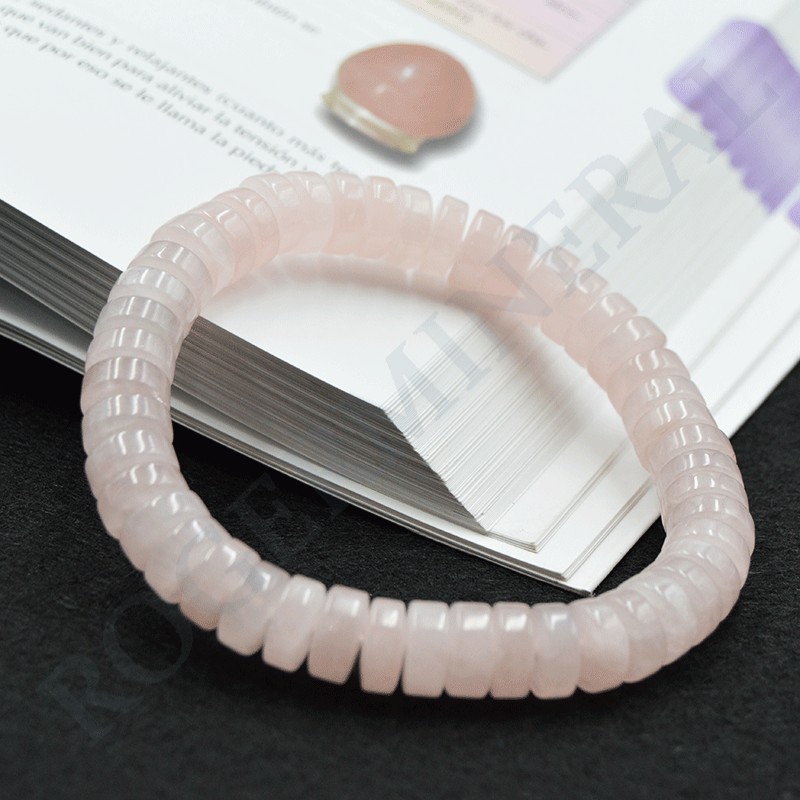 Bracelet en Quartz Rose perles plates.