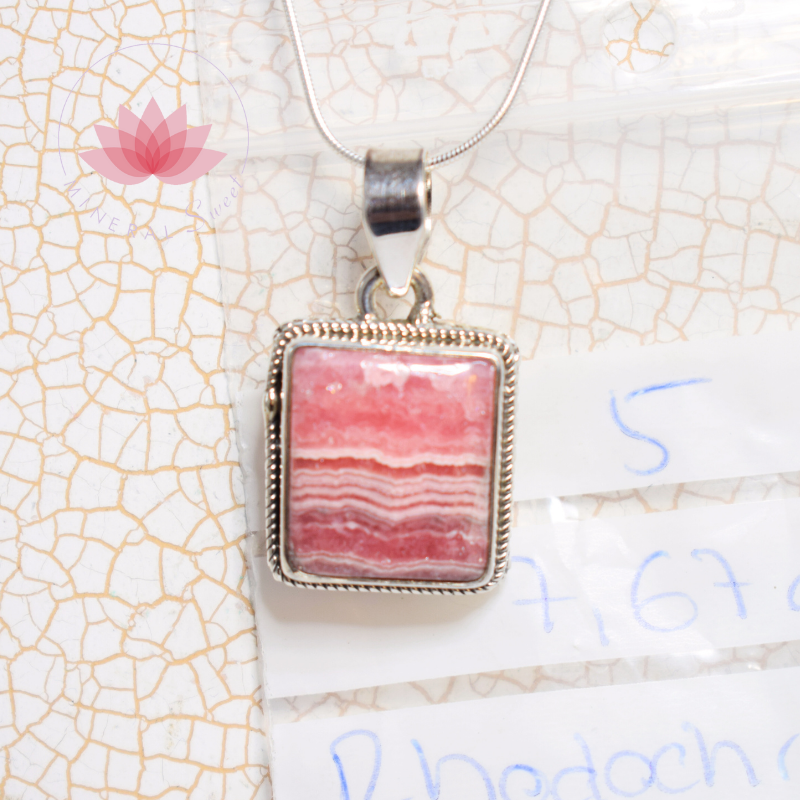 Pendentif en Rhodochrosite sertissage Argent 925, très belle qualité.