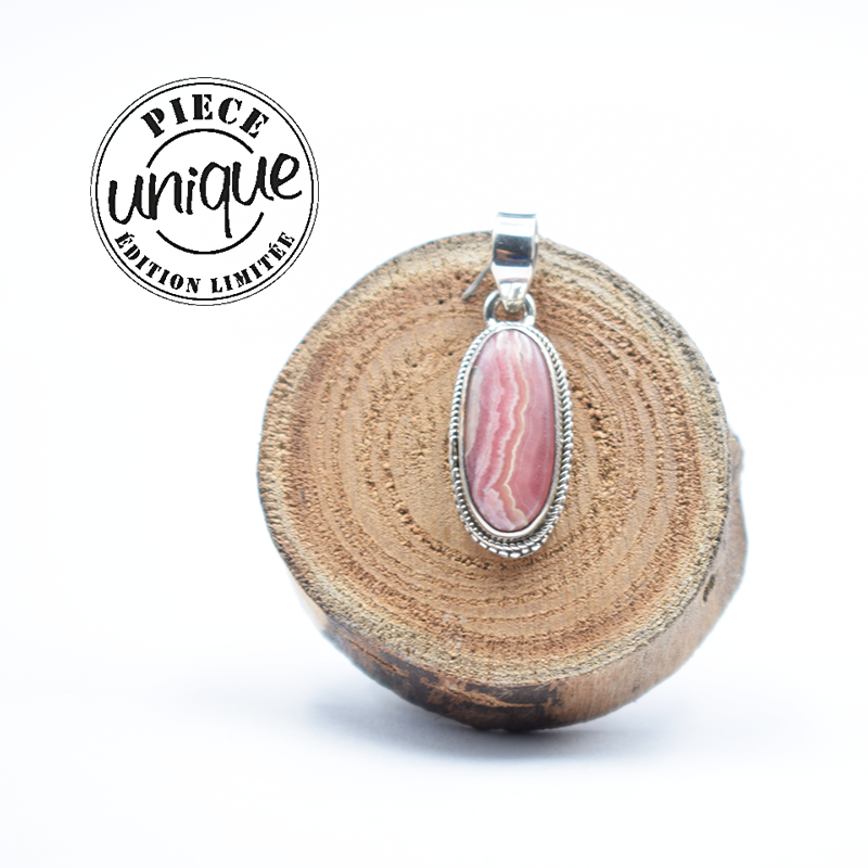 Pendentif en Rhodochrosite sertissage Argent 925, très belle qualité.