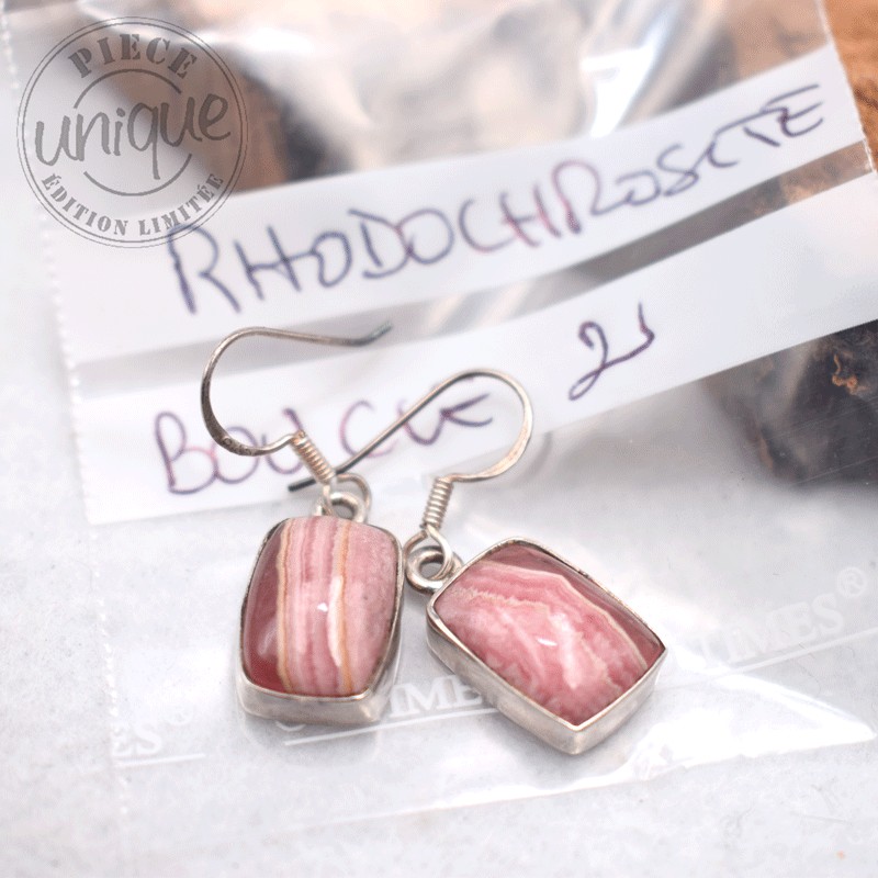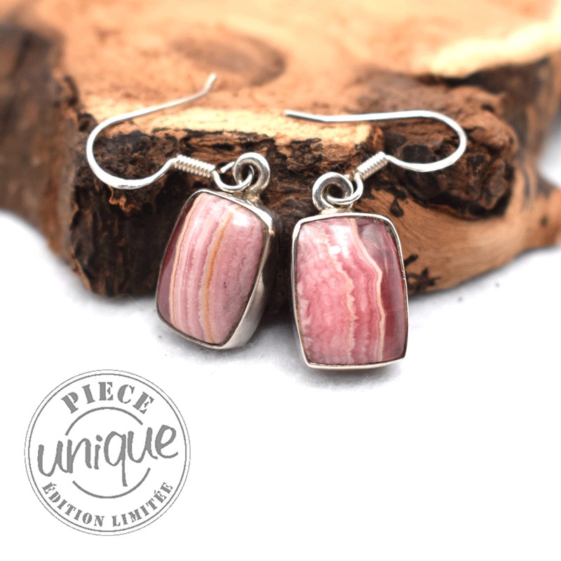 Boucles d'oreilles en Rhodochrosite sertissage Argent 925, très belle qualité.