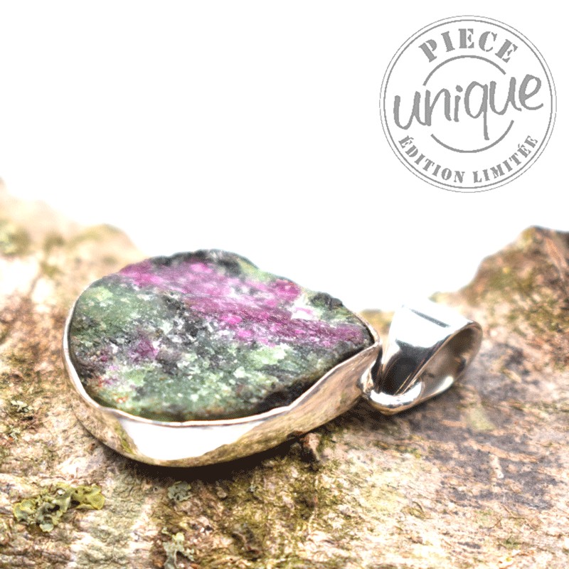 Beau pendentif en Rubis sur Zoïsite et argent.