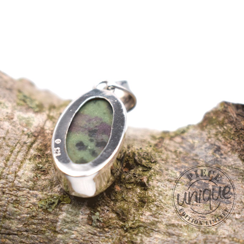 Beau pendentif en Rubis sur Zoïsite et argent.