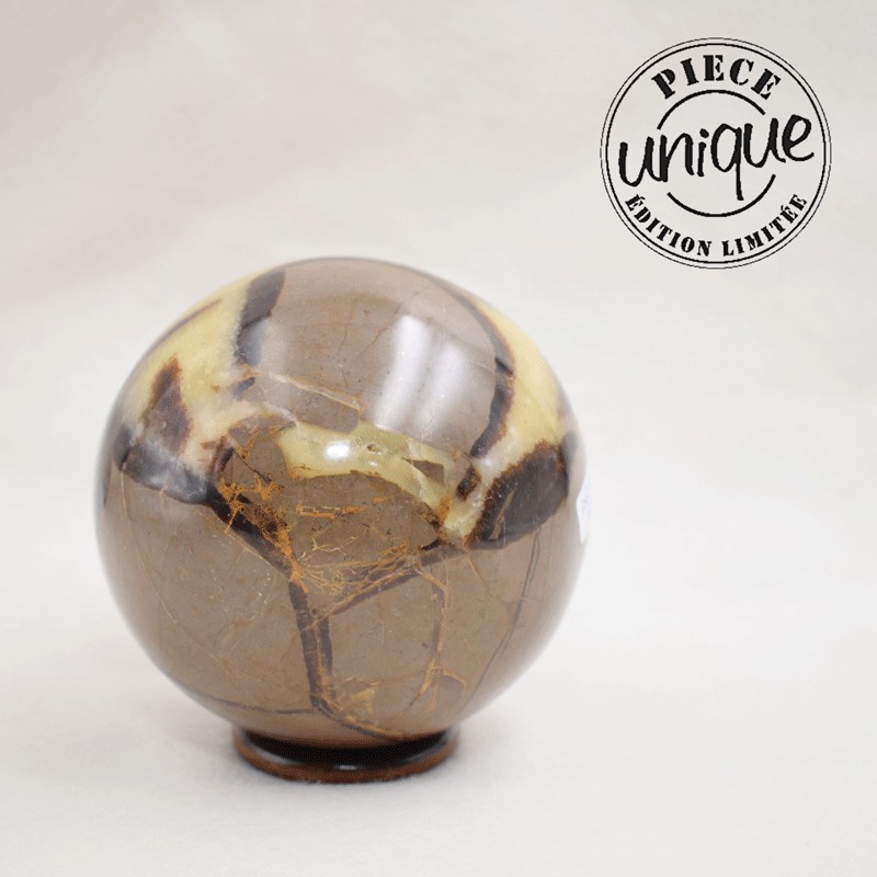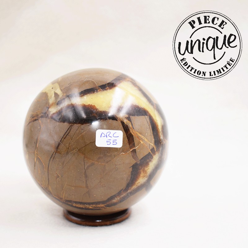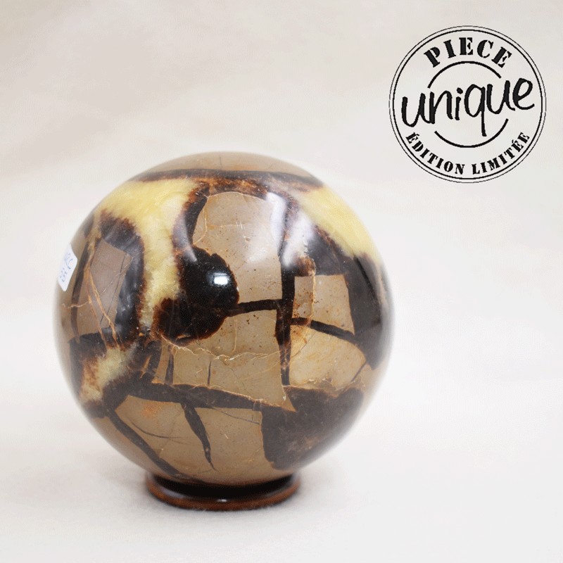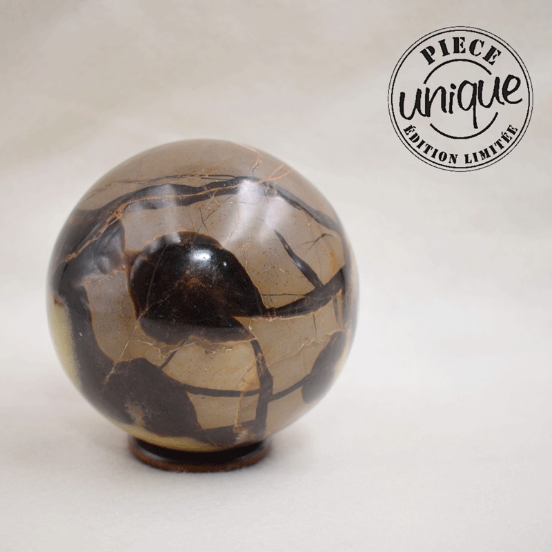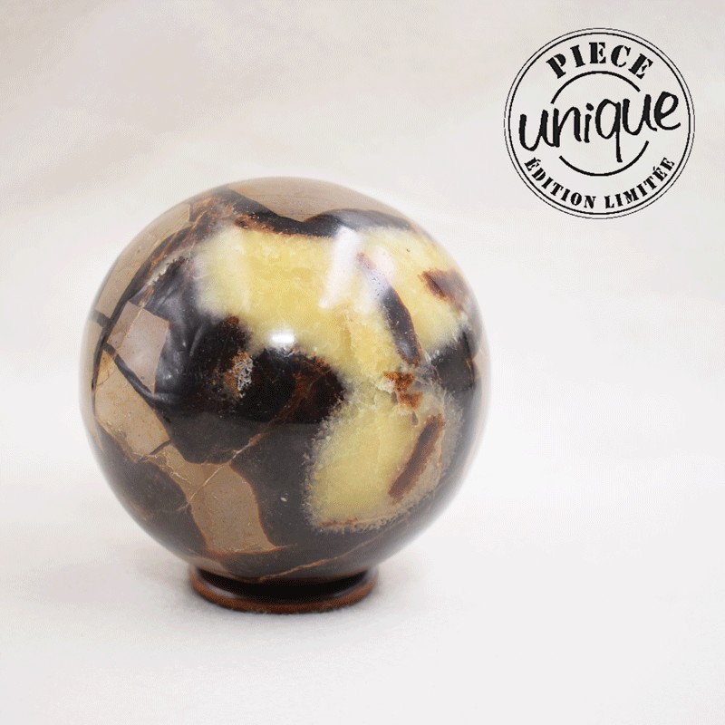 La Septaria est une roche sédimentaire appelée Marne qui est un mélange de calcaire et d'argile de composition chimique (CaCO3) , et de calcite jaune, de composition chimique: CaCO3
