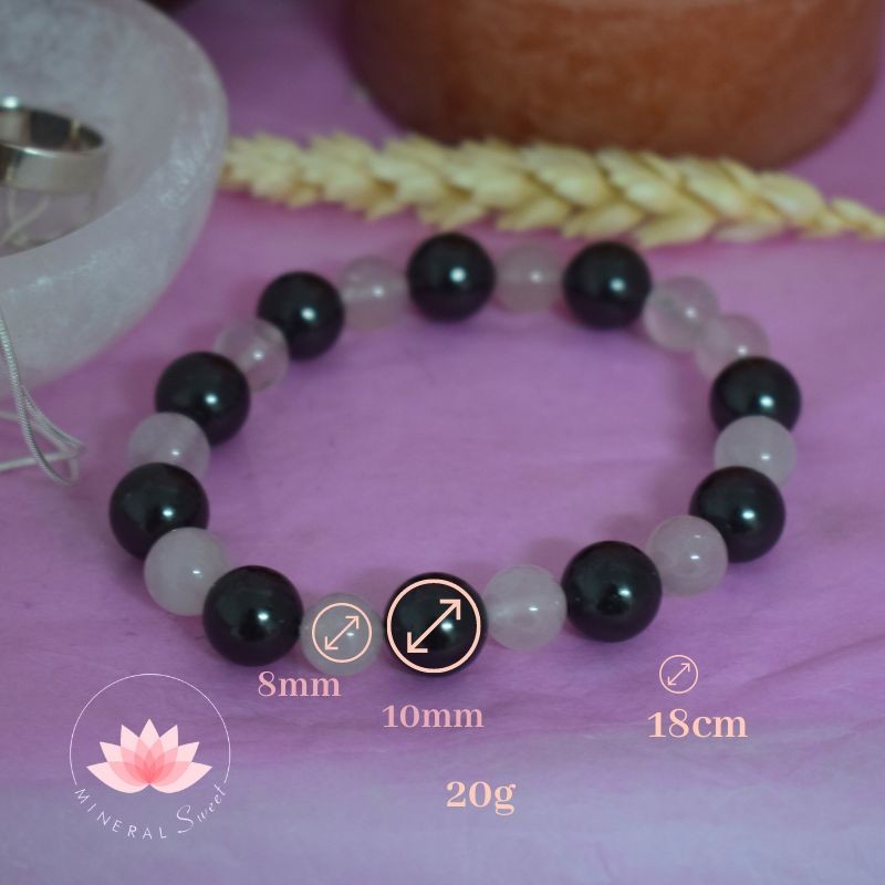 Il faut aussi souligner que les perles de Shungite nettoieront les perles de Quartz rose, lesquelles garderont toute leur force d’action. Ainsi le bracelet Shungite et quartz rose agira sur la personne de façon permanente tout en se régénérant.