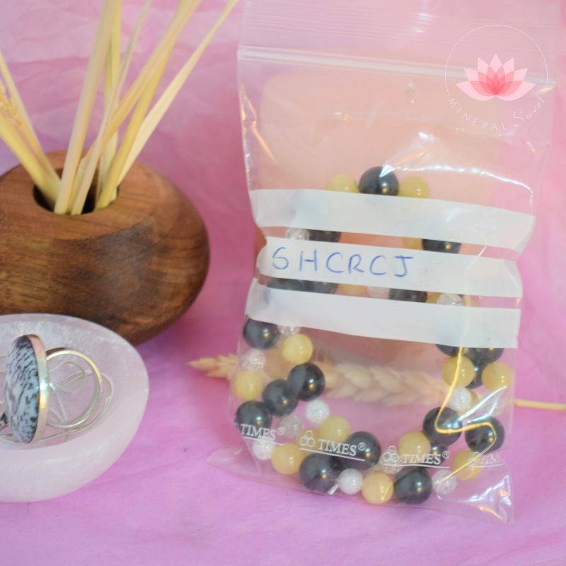 Bracelet de shungite, cristal de roche et calcite jaune