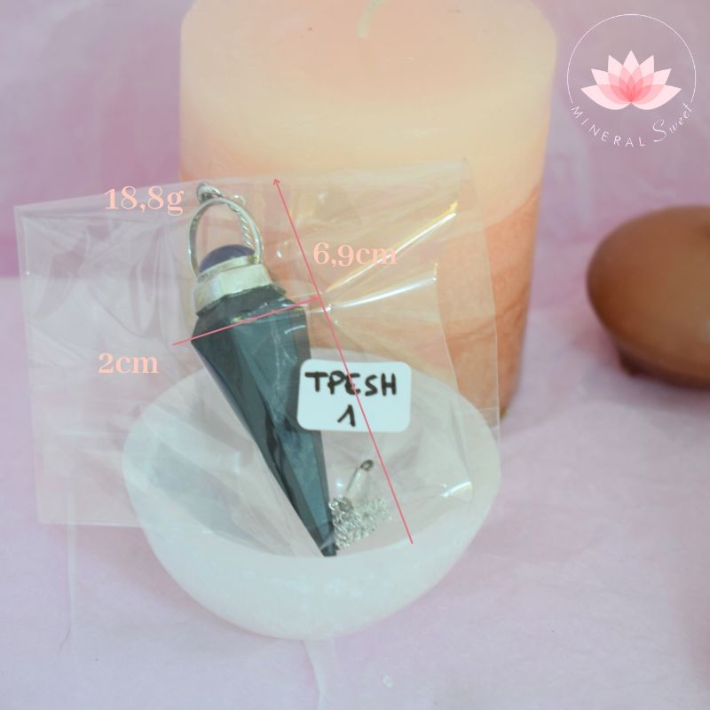 Pendentif composé d'une pointe biterminée de Shungite et une gemme d'Améthyste.
