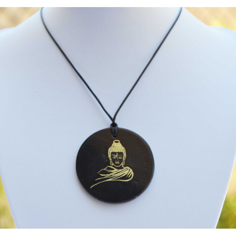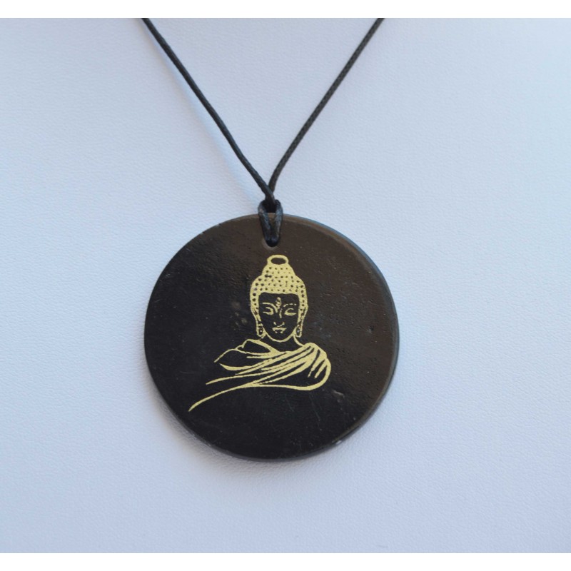 Un très beau pendentif en Shungite avec un Bouddha doré.