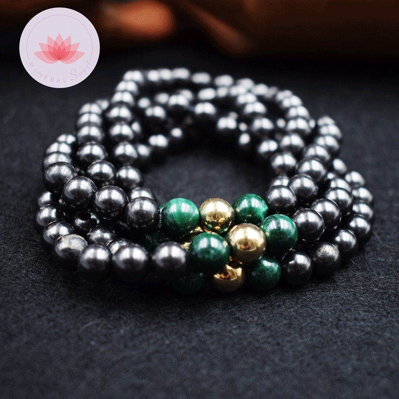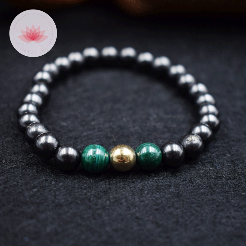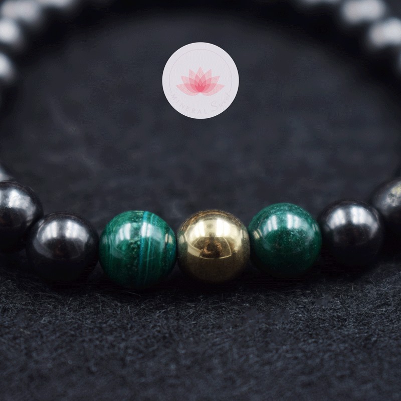 Bracelet Homme Shungite, Malachite, Pyrite façon dorée