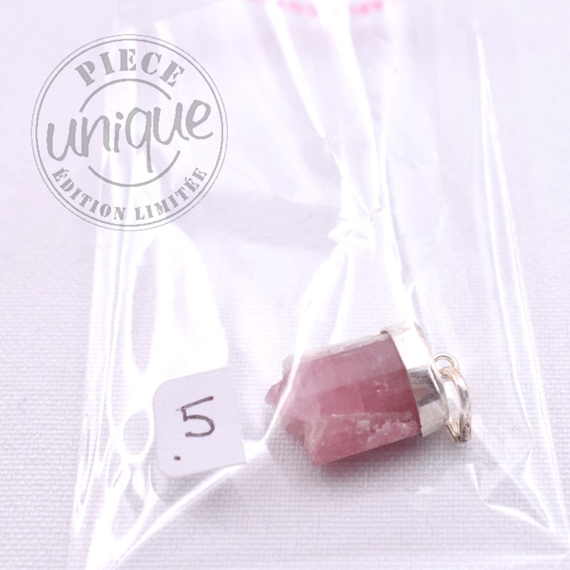 Pendentif en Tourmaline rose brute serti argent.