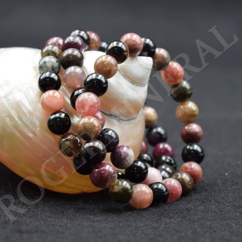 Bracelet Tourmaline multicolore perle de 8mm