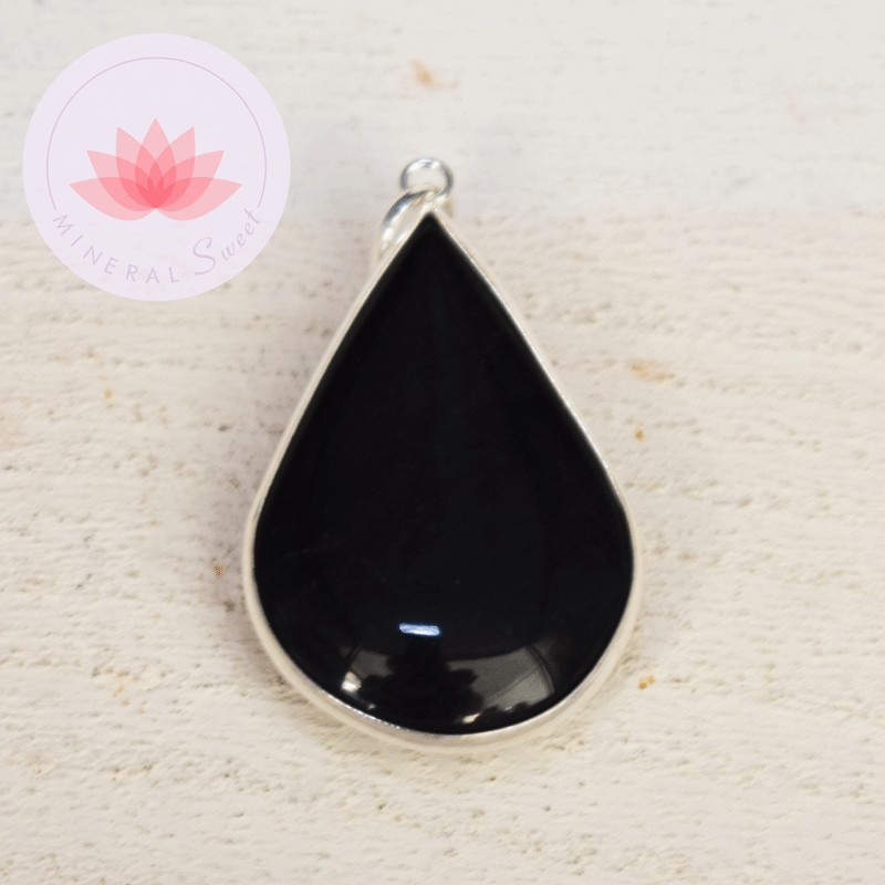 Pendentif goutte Tourmaline noire et argent