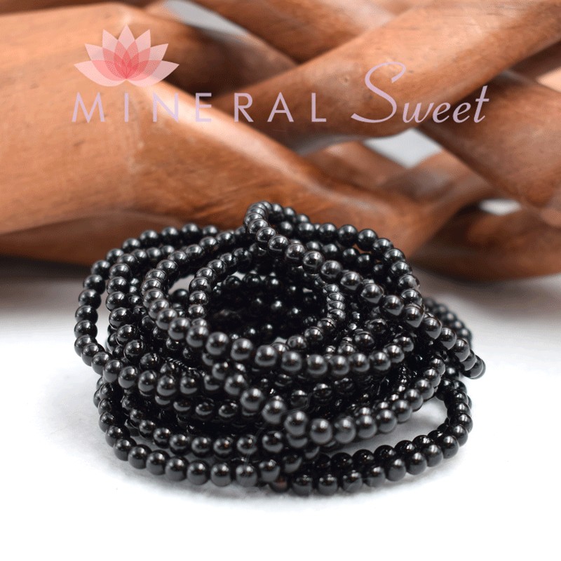 Bracelet pour enfant en Tourmaline Noir perles rondes 4mm.