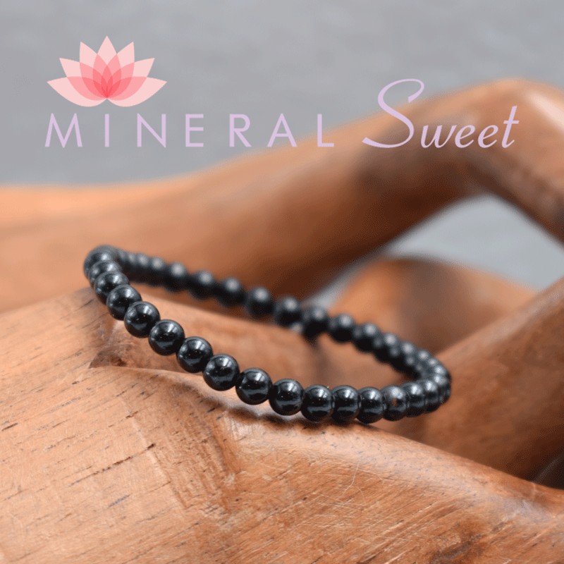 Bracelet enfant Tourmaline noire perles rondes 4mm