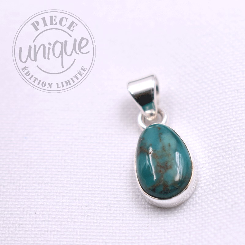 Pendentif en Turquoise d'Arizona serti argent.