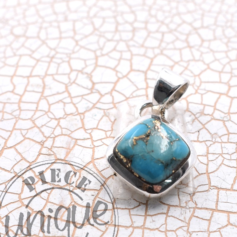 La turquoise est un minéral formé de phosphate hydraté de cuivre et d'aluminium dont la composition chimique est: CuAl6(PO4)4(OH)8·4H2O.