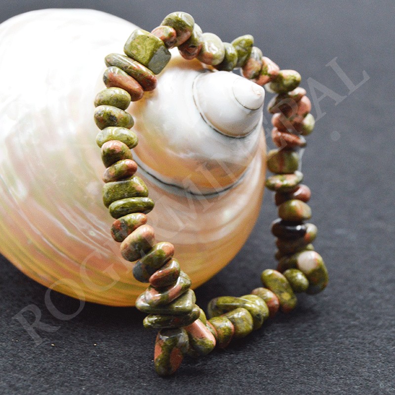 On peut dire de l'unakite que c'est une pierre de calme, d'apaisement, de relations amicales harmonieuses.
